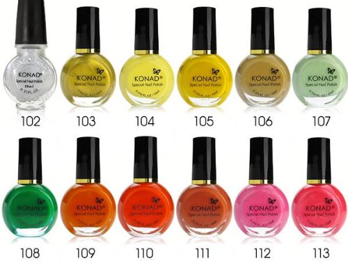 Spezial Stamping Farblacke wurden speziell für das Stamping-System entwickelt. Die Lacke sind wesentlich dickflüssiger und schnelltrocknender als reguläre Nagellacke.